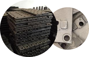 壓軌器可劃分為WJK、SWJK、HWJK系列TG38、TG43、TG50、TG60、QU70、QU80、QU100、QU120由底座、上蓋、穿肖、彈平墊圈組成。 壓軌器材質:壓軌器材質主要有兩種:1:半鑄鋼:上蓋為球墨鑄鐵、底座為鑄鋼。 2:全鑄鋼:上蓋和底座均為鑄鋼材質。
